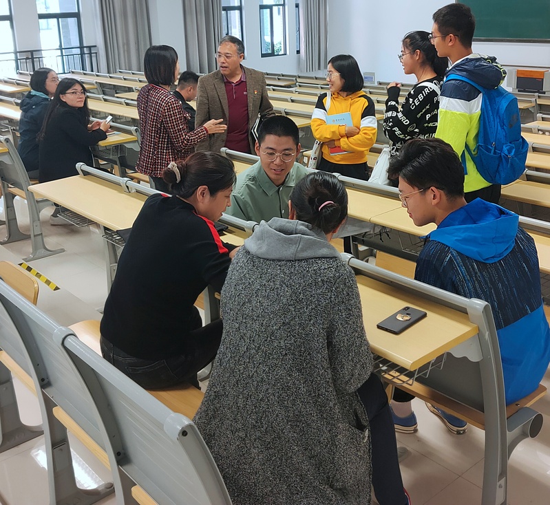 10月17日下午,在天枢楼B107教室举行的19应化主题班会上,副书记、副董事长周全法作为该班的特聘班导师为同学们讲了一堂生动的班课。