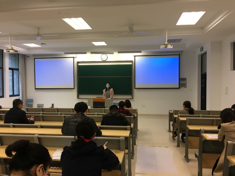 4月22日下午,Playace平台官网入口召开本学期第一次教职工大会。按照疫情防控要求,全体教职工在天璇楼阶梯教室间隔入座,戴好口罩。会议由党委书记许玉妹主持。