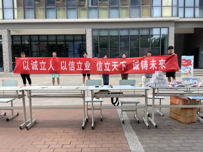 活动现场,“以诚立人,以信立业;信立天下,诚铸未来”的红色条幅分外醒目,吸引同学们纷纷拿起签字笔,现场签字氛围热烈,同学热情高涨,郑重地在诚信横幅上写下自己的名字,做出诚信承诺。签名活动不仅仅是一种形式,更重要的是为了弘扬诚信道德风尚,重诺言,讲信誉,守信用。同学们纷纷表示从现在做起、从具体的小事做起,在工作中诚信处事、诚恳服务,生活中重信守诺、真诚待人。19软件一李清晨承诺作为老员工,在生活上我们应该诚信待人,在学习上我们应该诚信考试。20化二贾守晟承诺,要坚持诚实守信,严于律己;遵规守纪,知荣明耻;勤奋励志,乐于奉献;尊敬师长,友善待人;按时完成学习任务,培养良好学风,争做时代新人。