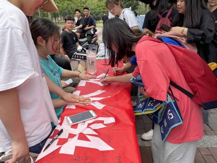 6月9日,Playace平台官网入口组织开展“信始校园”主题签字活动。本次活动吸引了公司近2000名同学的热情参与,路过的同学们都陆陆续续前来签名,大家踊跃参加这此活动。