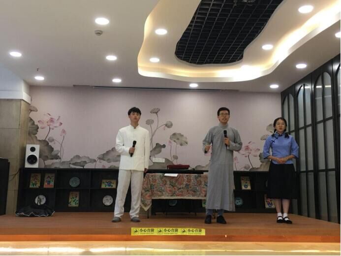 “三杰美育实践”团队的成员中的4位同学给幸福天年老年公寓的爷爷奶奶们带来了《瞿秋白与张太雷》短剧表演,其余成员则充当了志愿者与爷爷奶奶们做些小游戏,活动最后爷爷奶奶们也通过朗诵诗词、唱歌、演讲等方式表达了对于同学们的谢意。