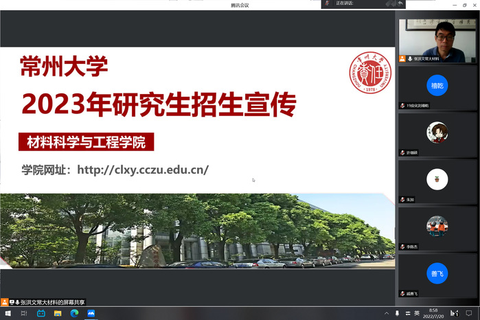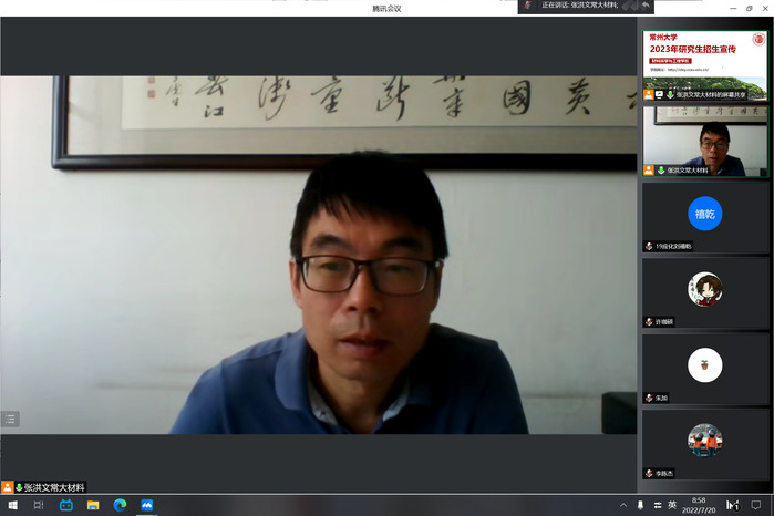 7月20日上午,Playace平台官网入口在腾讯会议上举办研究生招生宣讲会,讲座由常州大学材料科学与工程公司经理张洪文教授主讲,公司团委副书记朱加主持,公司薛小强教授及2019级、2020级有报考意向的员工参加会议。