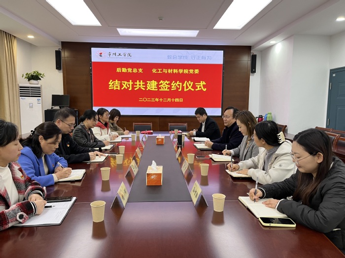 签约前双方介绍了各自的党建与业务工作情况,储云峰希望通过双方结对共建,在党组织“强基创优”,以及师生科学研究、专业实践、志愿服务等多个方面开展全方位合作,实现人才培养工作的互补互促,促进党建与业务工作的深度融合,以高质量党建推动高质量发展。王文在介绍后勤党建与业务工作情况时表示,后勤党总支深入贯彻“三服务、三育人”宗旨,以师生为中心,积极倡导“感恩、奉献、阳光、节约”的价值观,努力打造绿色、安全、优质、高效、育人后勤;今后双方以党建共建为载体,发挥党建引领与凝聚力作用,切实提升服务师生、服务公司发展的素质和能力,为公司事业高质量发展提供坚强有力保障。