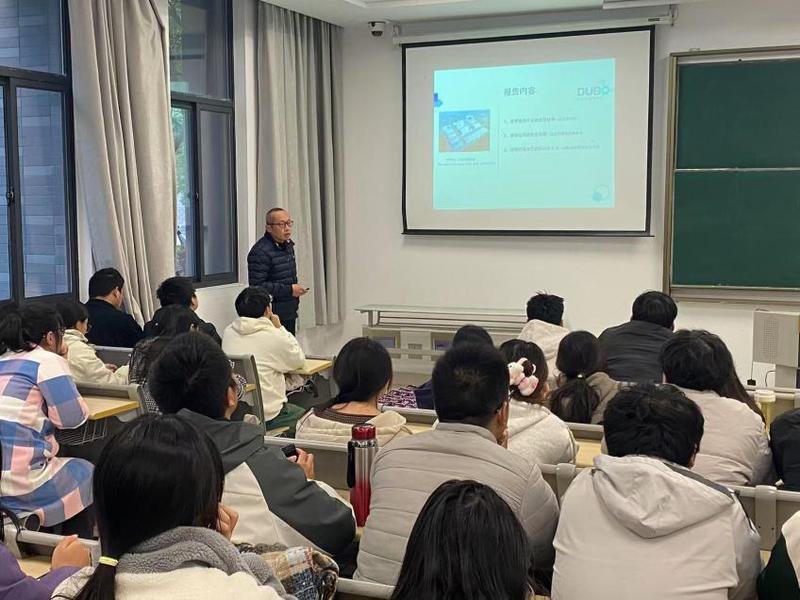 讲座开始前,魏雪姣隆重介绍了两位报告人,并希望同学们能够认真听讲、积极交流。都佩华的报告从企业生存发展入手,以汉高为例向师生们介绍了世界优秀外企的发展故事;从速度经营与成本优化的角度出发,分享了都铂高分子有限公司的创业历程;又以解决问题能力为导向,诠释了如何打造自己的职业竞争力,给同学们创新创业以及未来就业提供了重要参考。谢晨则围绕着知识产权,特别是专利的重要性,从专利基础知识、专利申请流程、专利信息检索、技术特性挖掘四个方面,详细介绍了专利布局及创新成果保护,为同学们知识产权创新意识的培养、创新能力和实践能力的提升,提供有力支持。在提问交流环节,两位报告人回答了关于行业发展、人才需求、岗位职责等问题,进行了深入和务实的答疑解惑。