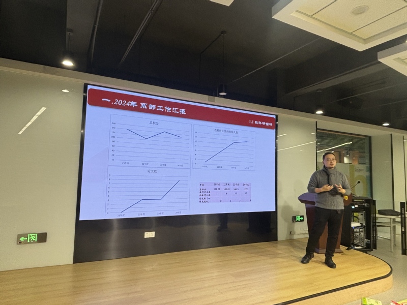 会上,周品对一年来的工作进行总结,用图表分析了2021-2024年度总体教科研分值、各教师的教科研工作参与度、员工竞赛获奖情况以及课题组运作成效等情况。他指出,资源循环科学与工程系虽经历了建设-搬迁-建设的考验,但课题组建设稳中有序,员工竞赛、教科研、技能大赛和社会服务等方面成果丰厚,这离不开全系教职员工的辛勤付出、密切配合。