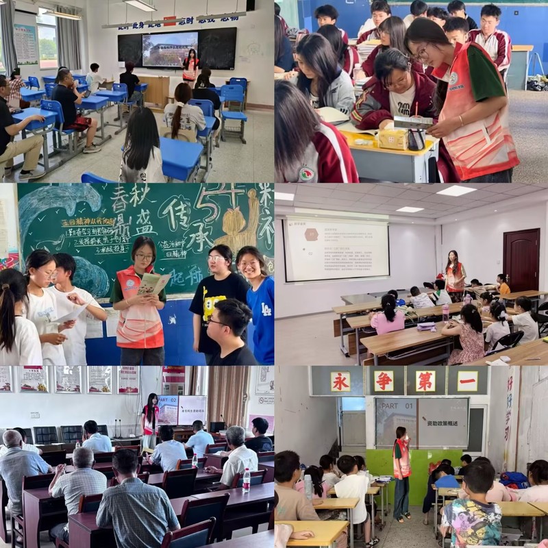 资助宣传大使们返回家乡后,主动走进高中母校、社区街道,通过政策宣讲会、发放宣传手册、一对一咨询等形式,向学弟学妹和居民普及国家资助政策。在广西、贵州等偏远地区,团队针对部分家庭信息闭塞的现状,用方言“零距离”讲解政策细节,消除“因贫弃学”的顾虑,助力教育公平向基层延伸。