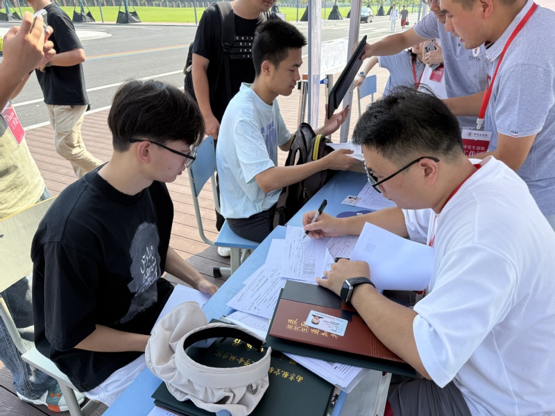 迎新现场,公司党委书记储云峰、副经理孔宪强、李健男、研究生秘书冯坤与招生志愿者早早到场等候,协助新生办理入学手续、搬运行李、熟悉校园环境,并为其发放了定制帆布包、卡套和钥匙扣等公司专属文创礼包,提升新生的归属感与认同感。
