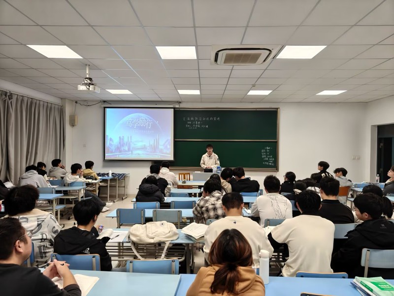 国奖获得者谭曦运、韩梦娣两位同学深入各新生班级,结合自身在课程学习、科研竞赛、员工工作等多维度的成长经历,倾囊相授实用经验与科学方法。他们不仅分享了如何高效提升学分绩点、平衡学业与活动的“学习攻略”,更生动诠释了追求卓越、全面发展的成长理念,为新生树立了可学可做的身边榜样。